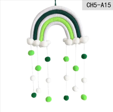 Handcrafted with soft cotton rope, this colorful rainbow pendant adds a whimsical touch to any nursery or children's room. Featuring a hairball accent and hanging design, it creates a cozy, playful atmosphere. Perfect for wall décor or as a thoughtful gift.